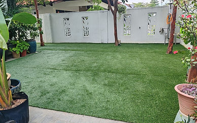 Balcony artificial grass installation in Kuala Lumpur with drain cell